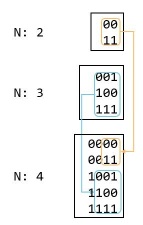 N이 4인 경우도 N이 2일때 만들 수 있는 수 앞에 00