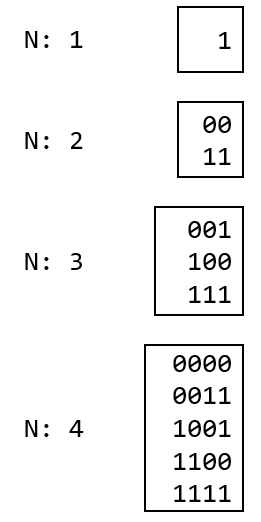 N이 4인 경우도 N이 2일때 만들 수 있는 수 앞에 00카드를 붙인 수와 N이 3일때 만들 수 있는 수 앞에 1카드를 붙인 수로 구성되어 있다.