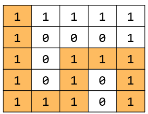 첫째 줄에 두 정수 N, M(2 ≤ N, M ≤ 100)이 주어진다. 다음 N개의 줄에는 M개의 정수로 미로가 주어진다. 각각의 수들은 붙어서 입력으로 주어진다.