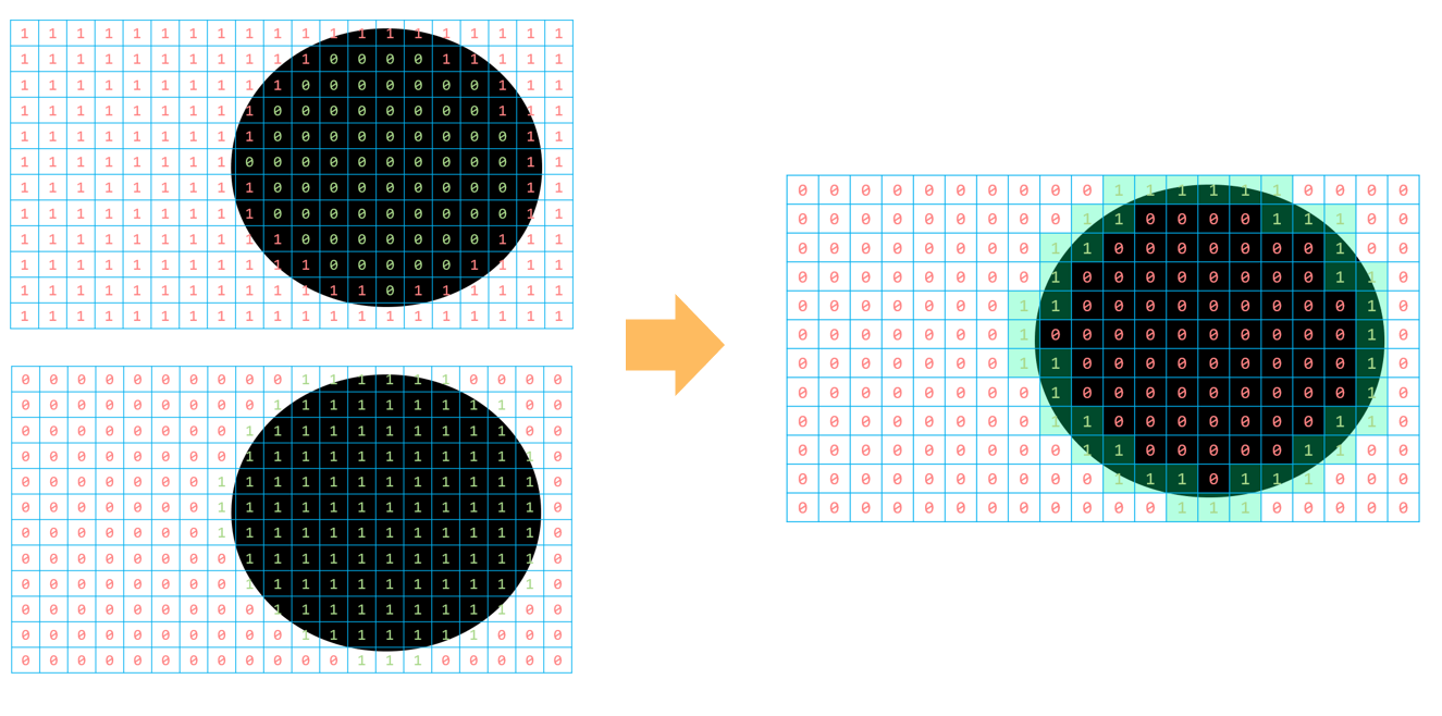 이렇게 물체에서 테두리 픽셀만 1인 결과를 얻을 수 있다. 이제 다음 글에서 이 방법을 활용하여 물체 테두리를 추출하는 방법을 구현해 보겠다. 그리고 이 테두리에 색을 입혀 화면에 출력하는 것 까지 다뤄본다.