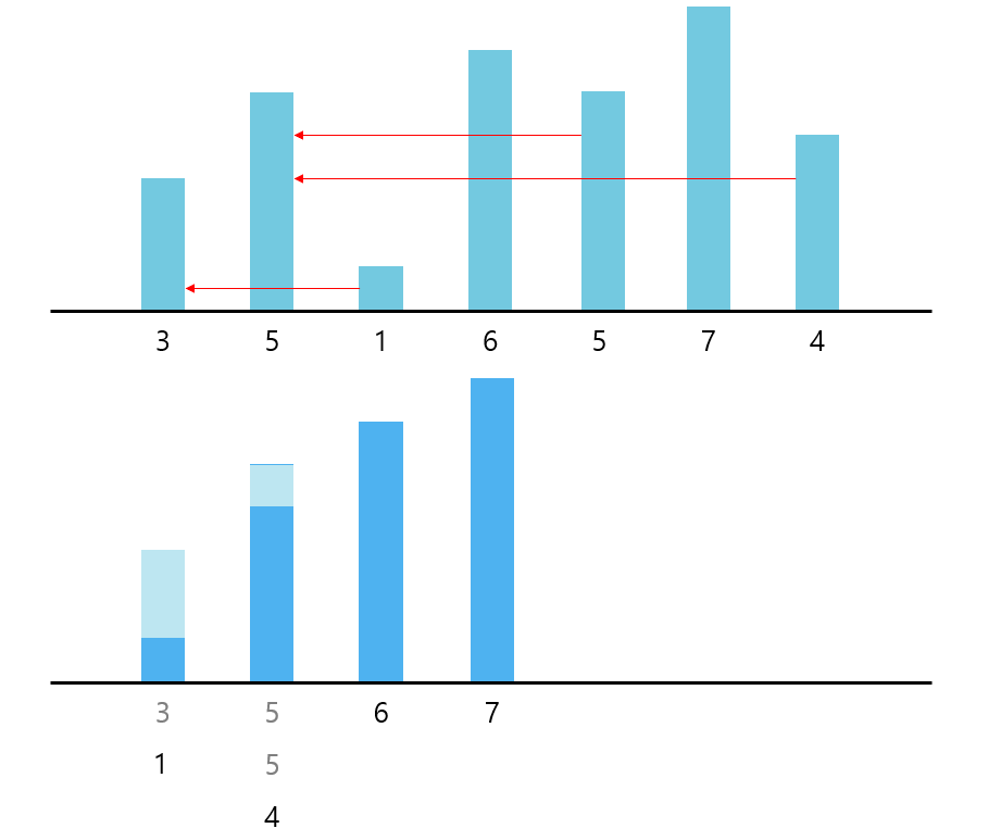 수열 {3, 5, 1, 6, 5, 7, 4}에 대해서 예를 보이겠다.