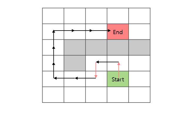 하지만 아쉽게도 outMap을 참조하면 시작지점 → 목표지점이 아니라 목표지점 → 시작지점의 경로가 반환된다. 그래서 결과 값의 반전이 필요한데 이때 stack을 활용할 수도 있지만, 더욱 효과적인 방법은 애초에 탐색을 거꾸로 하는 것이다. 즉, 목표지점 → 시작지점으로 입력을 주면 시작지점 → 목표지점의 결과가 나오게 될 것이다.