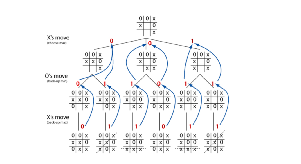 x를 맥스 플레이어, o를 민 플레이어라고 했을 때 각각의 플레이어의 다음 수를 결정 하는 함수는 다음과 같다.