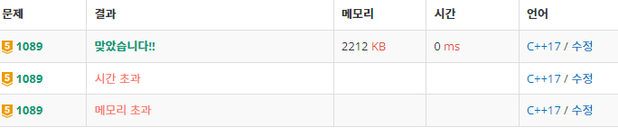 이번 문제에서 이차원 배열을 탐색하여 표현 가능한 숫자를 만드는 부분을 구현하는 것과, 가능한 숫자들을 조합하여 만들어진 수의 평균값을 "빠르게" 계산하는 것이 핵심입니다. 이차원 배열을 탐색하여 표현 가능한 숫자를 만드는 부분은 생각보다 간단하게 구현할 수 있지만, 조합하여 만들어진 수의 평균값을 "빠르게" 계산하는 것은 비교적 쉽게 떠올리기 어려웠습니다. 조합하여 만들어질 수 있는 수의 최대 크기는 \(10^n\) 이기 때문에 직접 모두 계산할 경우 다음과 같이 시간 초과 혹은 메모리 초과가 발생할 수 있습니다.