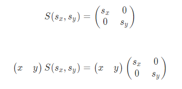 이러한 변환을 스케일 변환이라 하며 수식으로 나타내면 다음과 같다.
