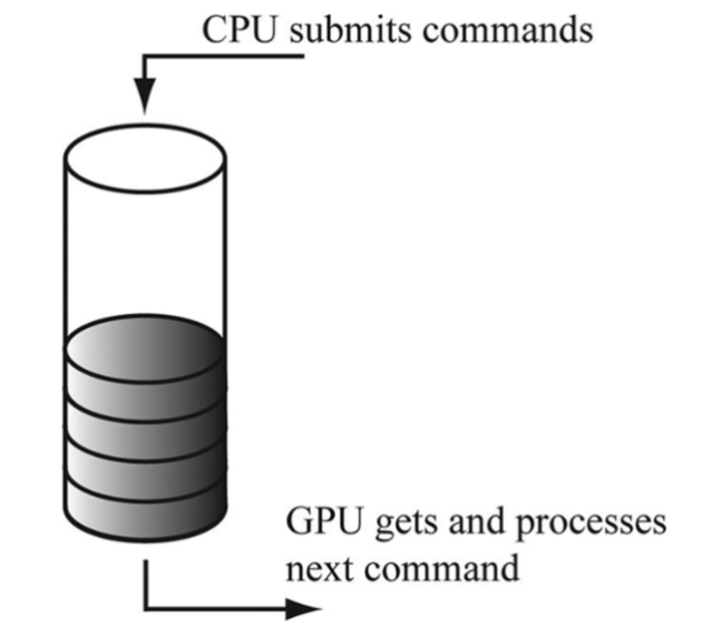 - GPU는 명령 대기열에서 명령들을 뽑아서 실행.