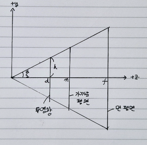 여기서는 일반 3D 게임에서 많이 사용되는 원근 투영 변환 행렬을 다룬다.