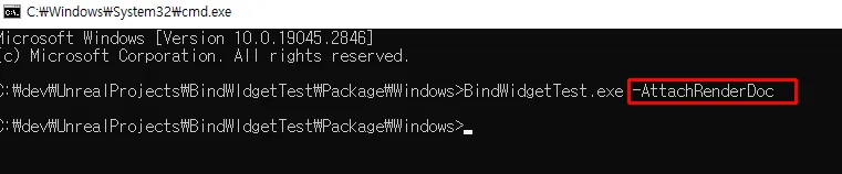 배포된 exe 파일 실행 시 인자로 -AttachRenderDoc 전달.