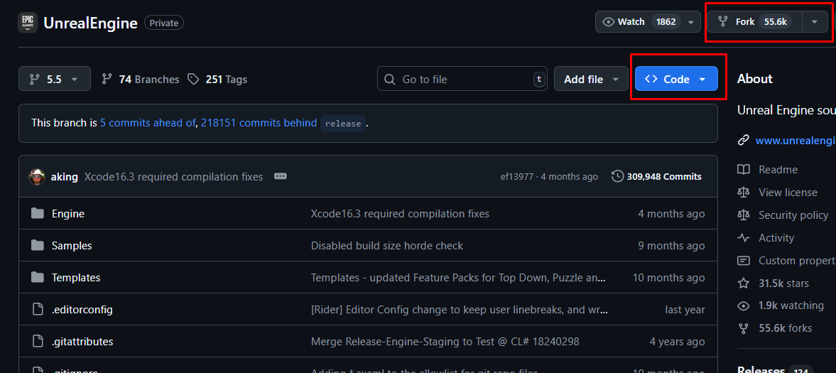 - 언리얼 깃허브에서 원하는 버전의 코드를 받기