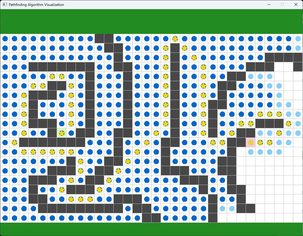 이 프로그램은 A* 알고리즘과 JPS 알고리즘을 시각적으로 확인할 수 있는 간단한 프로그램이다.