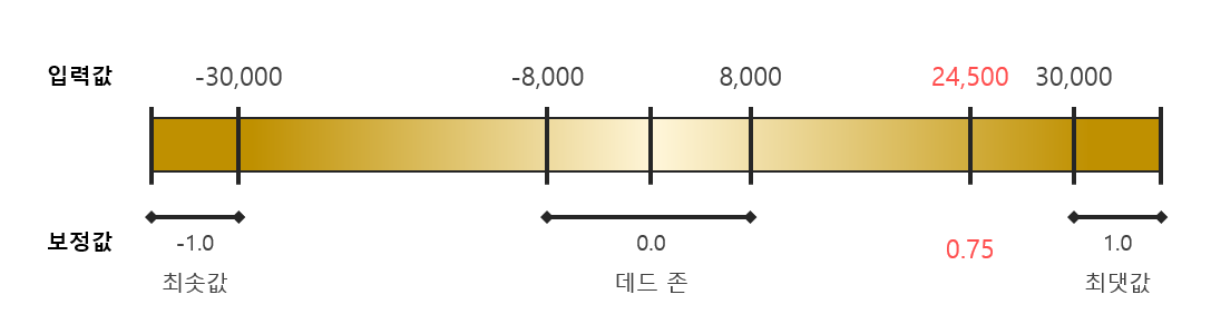 - 데드 존과 최댓값 사이의 값으로 스케일 한다.
