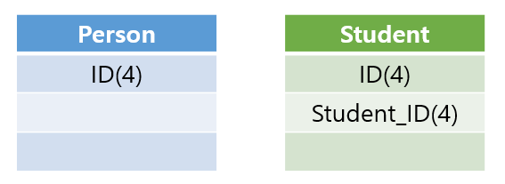 - Person의 인스턴스의 크기는 4Byte (ID)이고, Student의 인스턴스 크기는 8byte(ID, Student_ID)이다.