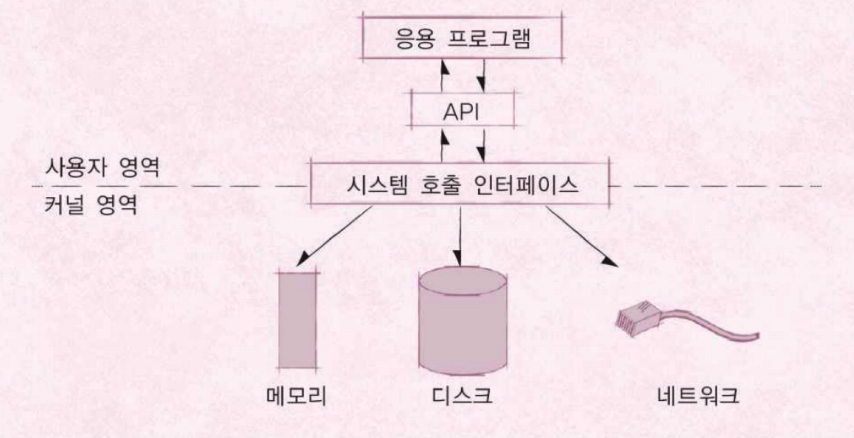 - 시스템 콜(System Call): 운영체제가 운영체제 각 기능을 사용할 수 있도록 제공하고 있는 명령 또는 함수. API는 내부에서 시스템 콜을 호출하는 형태로 만들어진다.