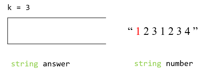정리하면 이번 그리디 알고리즘의 부분적인 최적의 해는 앞자리에 있는 작은 수를 버린다 이고, 이를 k가 0이 될 때까지 반복하면 된다.