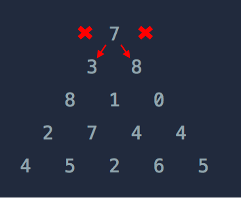 [[7], [3, 8], [8, 1, 0], [2, 7, 4, 4], [4, 5, 2, 6, 5]] 30