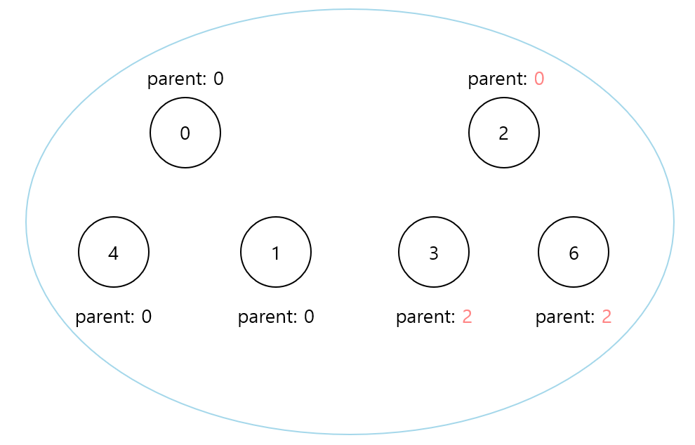 - 노드의 연결 정보가 아니라 최상단 부모 노드의 정보만 기록하고 있다.