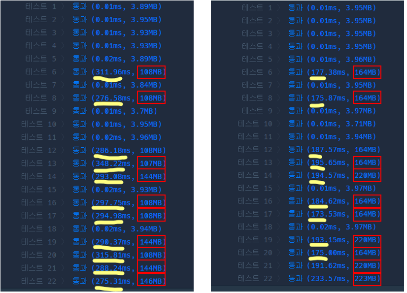 반면 메모리 사용량에서는 동적으로 공간을 활용하는 해시맵이 더 성능이 좋음을 확인할 수 있다. 시간과 공간에 트레이드오프가 있기 때문에 상황에 맞게 골라서 사용하자.